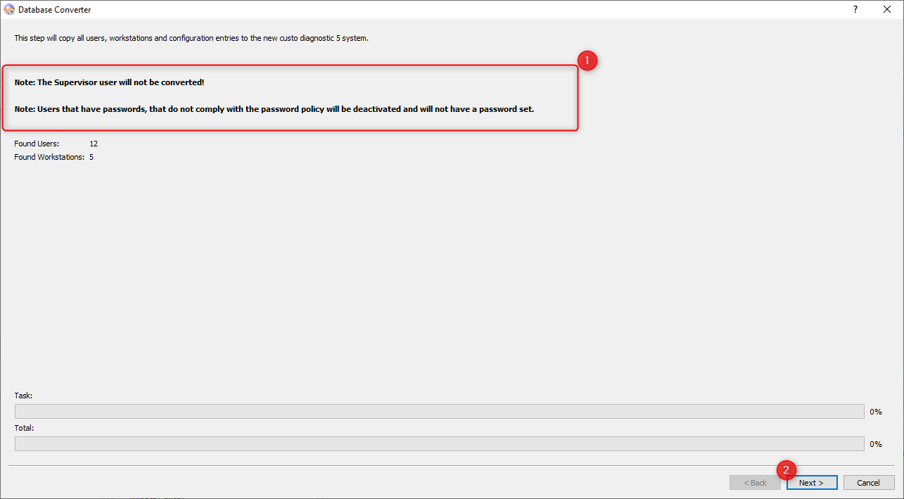 - unter (1) stehen nochmal die Hinweise, dass der Supervisor nicht konvertiert und Benutzer, die nicht den Passwortrichtlinien entsprechen deaktiviert werden