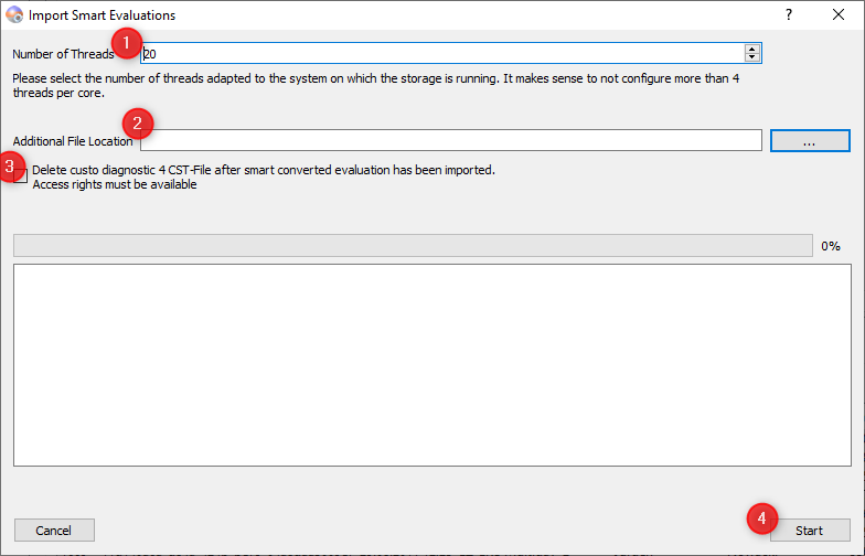 Die anzeigte Zahl der konvertierten Auswertungen "Successfully converted Evaluations" kann von der tatsächlichen Zahl der CST-Dateien abweichen, da: